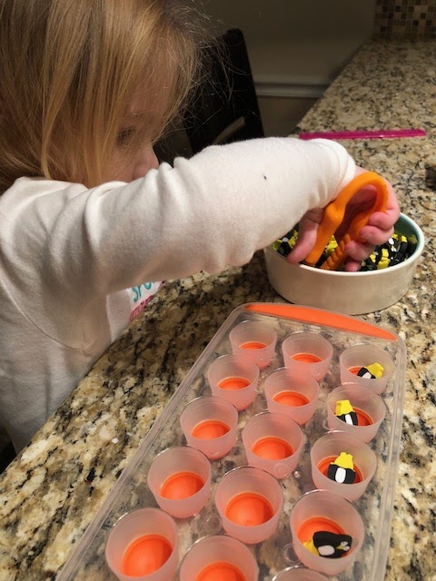 fine motor tools! Last year we tried them and she couldn't quite get it. This year she loves them! I had her use the tweezers to pick up the